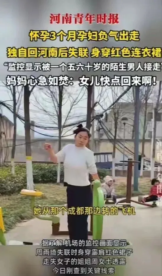 1月29号那天,这位叫周雨琦的孕妇,因为家里一点小事跟家人吵了几句,情绪一下子就上来了,谁也没说,自己订了机票就从海南往郑州飞。最让人担心的是,她一件厚衣服都没带,就一身夏装,郑州那时候天寒地冻的,她就这么单薄地出了机场,整个人看着迷迷糊糊的,在出站口来回走。有好心人看她不对劲,问她要不要帮忙,她就说在等叔来接,可家里人翻遍了亲戚朋友,根本就没这么个人,这话一听就透着古怪。