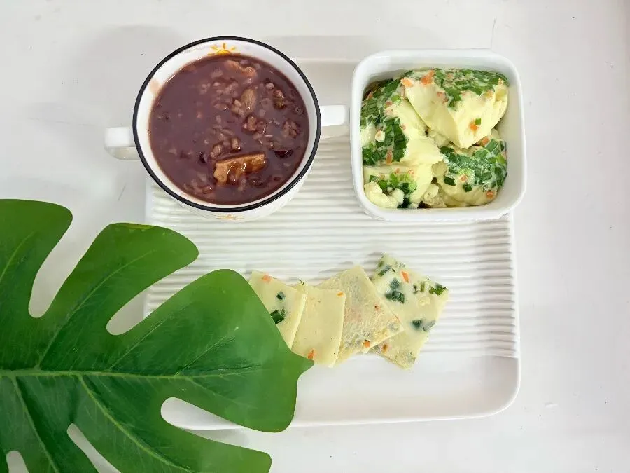 早餐: 腊八粥 五彩蒸蛋 时蔬煎饼