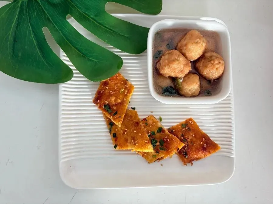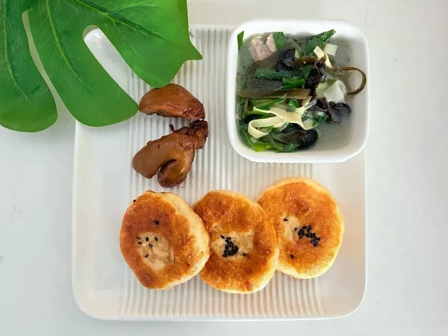 午餐: 酸汤素丸子 酱香饼