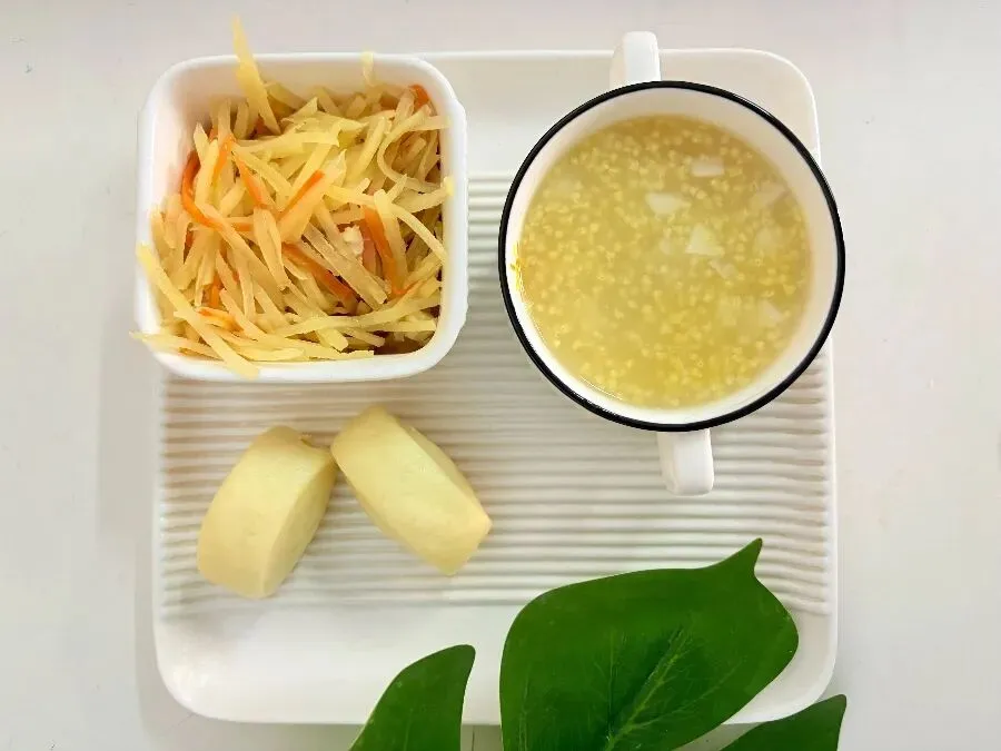 早餐:山药小米粥 醋溜土豆丝 奶香馒头