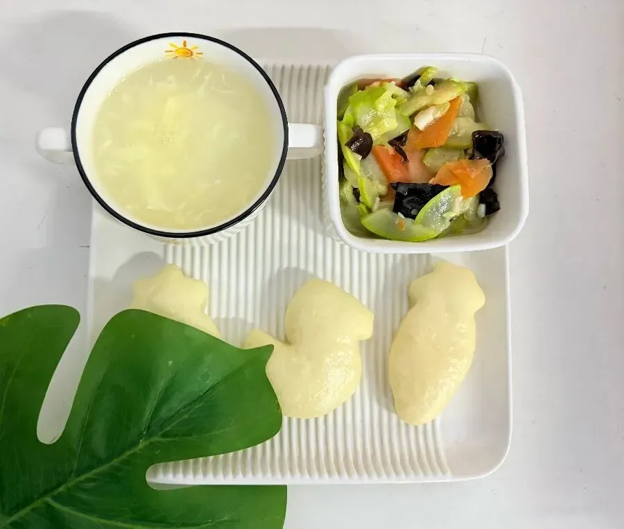 早餐:鸡蛋面穗汤 清炒西葫芦 小动物馒头