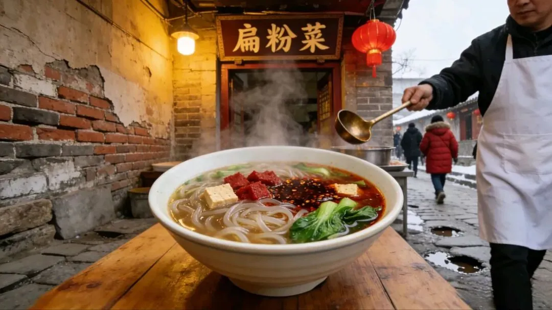 那么,这场三千年前的文明“大爆炸”,在今天的餐桌上留下了怎样的“宇宙余晖”?当你走入老街,答案就在那碗浓香四溢的扁粉菜里。宽扁的红薯粉,在骨头浓汤中吸饱汁水,配上青菜、豆腐,朴实无华,却温暖扎实。这像不像殷墟文明的特质?它没有后来某些文化那般精雕细琢的浪漫,却以最坚实、浑厚、接地气的方式,奠定了华夏文明的肠胃与筋骨。一碗下肚,你便懂了:伟大的文明,终将落胃为滋养寻常百姓的恒常温度。