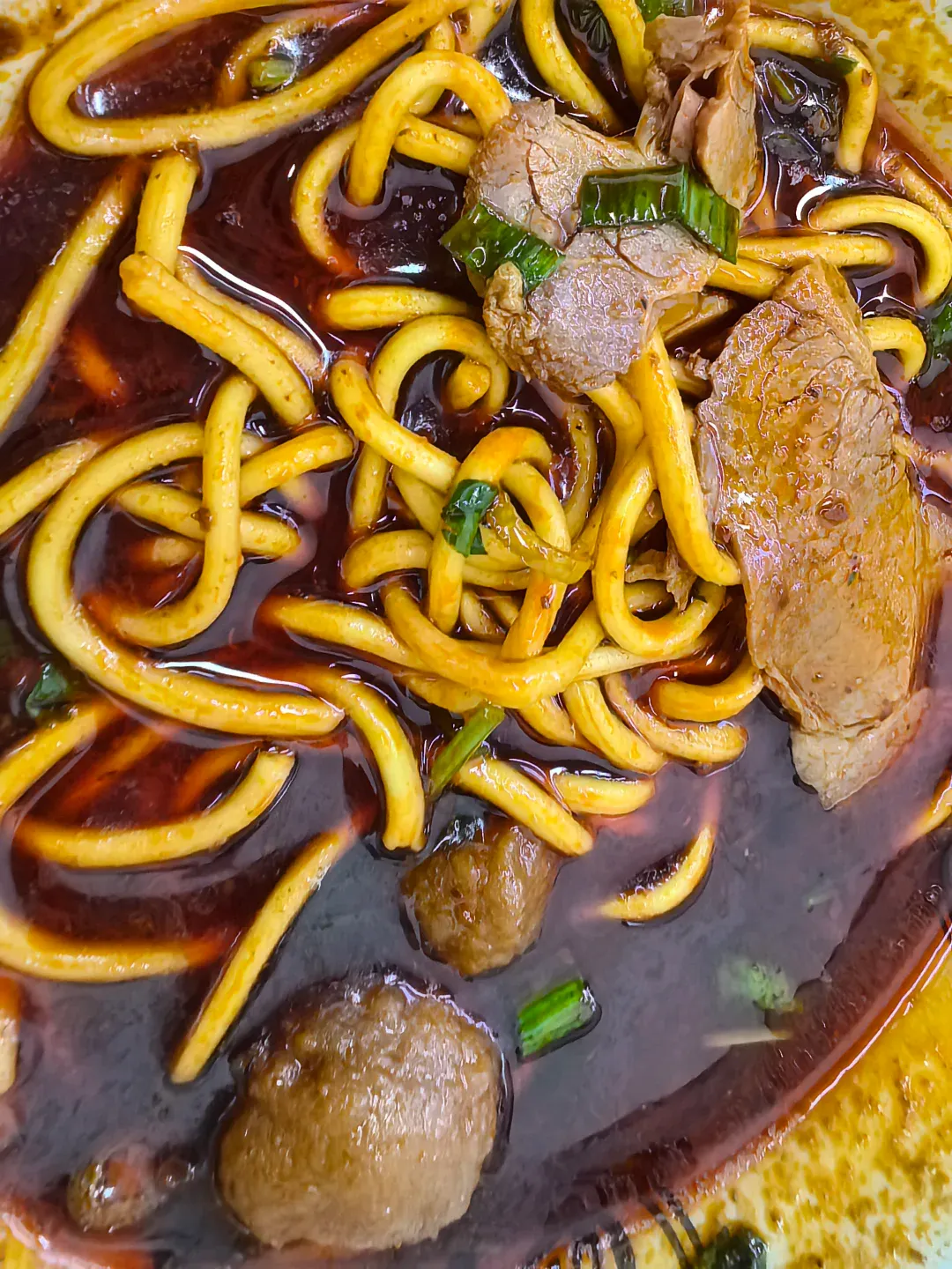 介休人的早午餐都是从这碗面开始的。面条是手工拉出来的,极细却有韧劲。点上一碗,老板会给你浇上一勺红亮但不算太辣的肉燥,配上当地特有的陈醋。第一口是碱水面的清爽,第二口是陈醋激发的麦香,最后把那块吸满汤汁的卤肉塞进嘴里,高铁上的疲惫瞬间就散了。