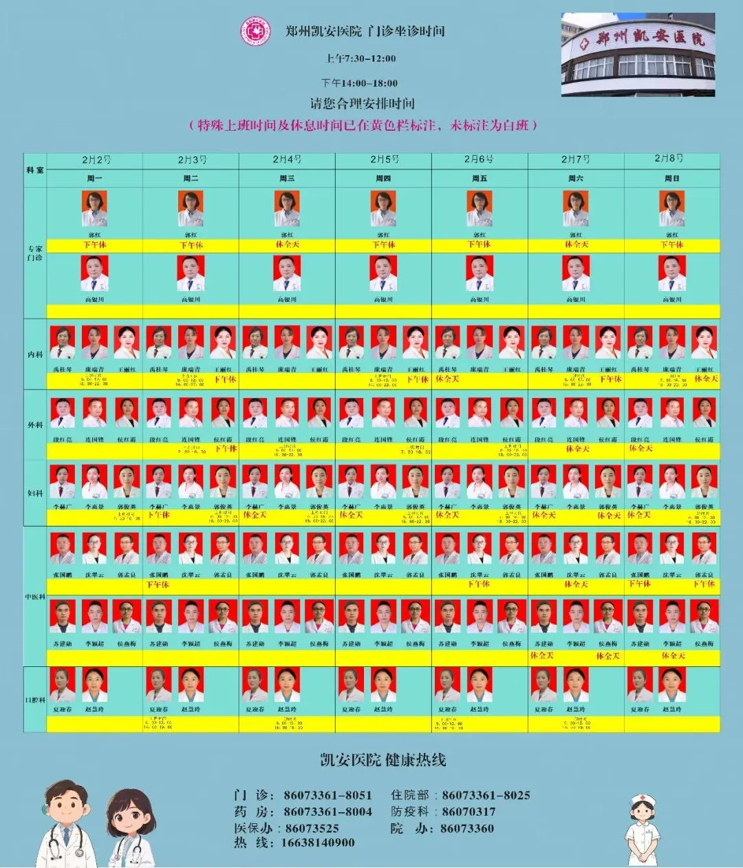 排班表 ‖2月2-8日郑州厚德中医诊所医师排班表