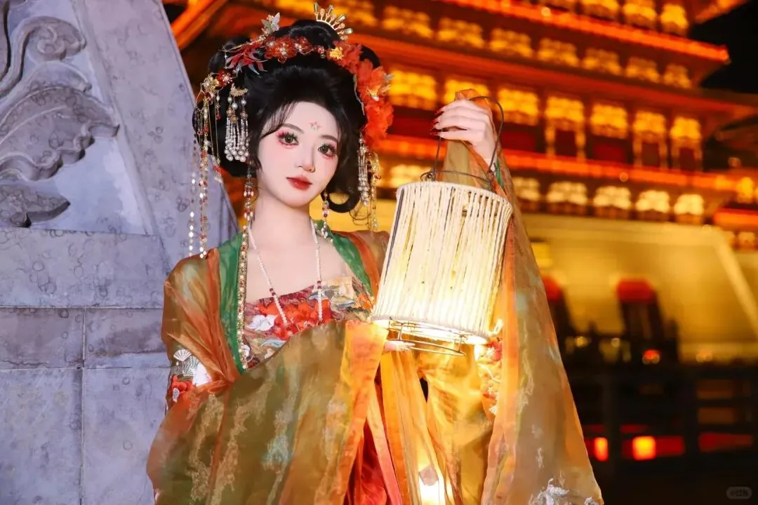 步入洛邑古城与相连的街巷,时间变得具体而温润。着一身清雅的宋制褙子或端庄的明制马面裙,执一把团扇,漫步于灯笼初上、青石板泛光的老街。