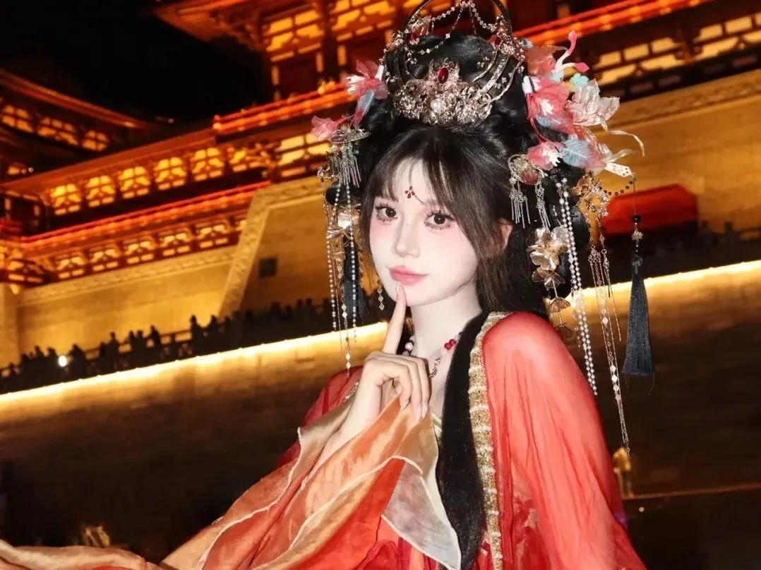 当身着唐制齐胸襦裙,头戴花钗,披帛随风轻扬,立于应天门巨大的城门洞下或登上阙楼时,那“万国衣冠拜冕旒”的盛世气象,便不再是书本上的抽象记载。