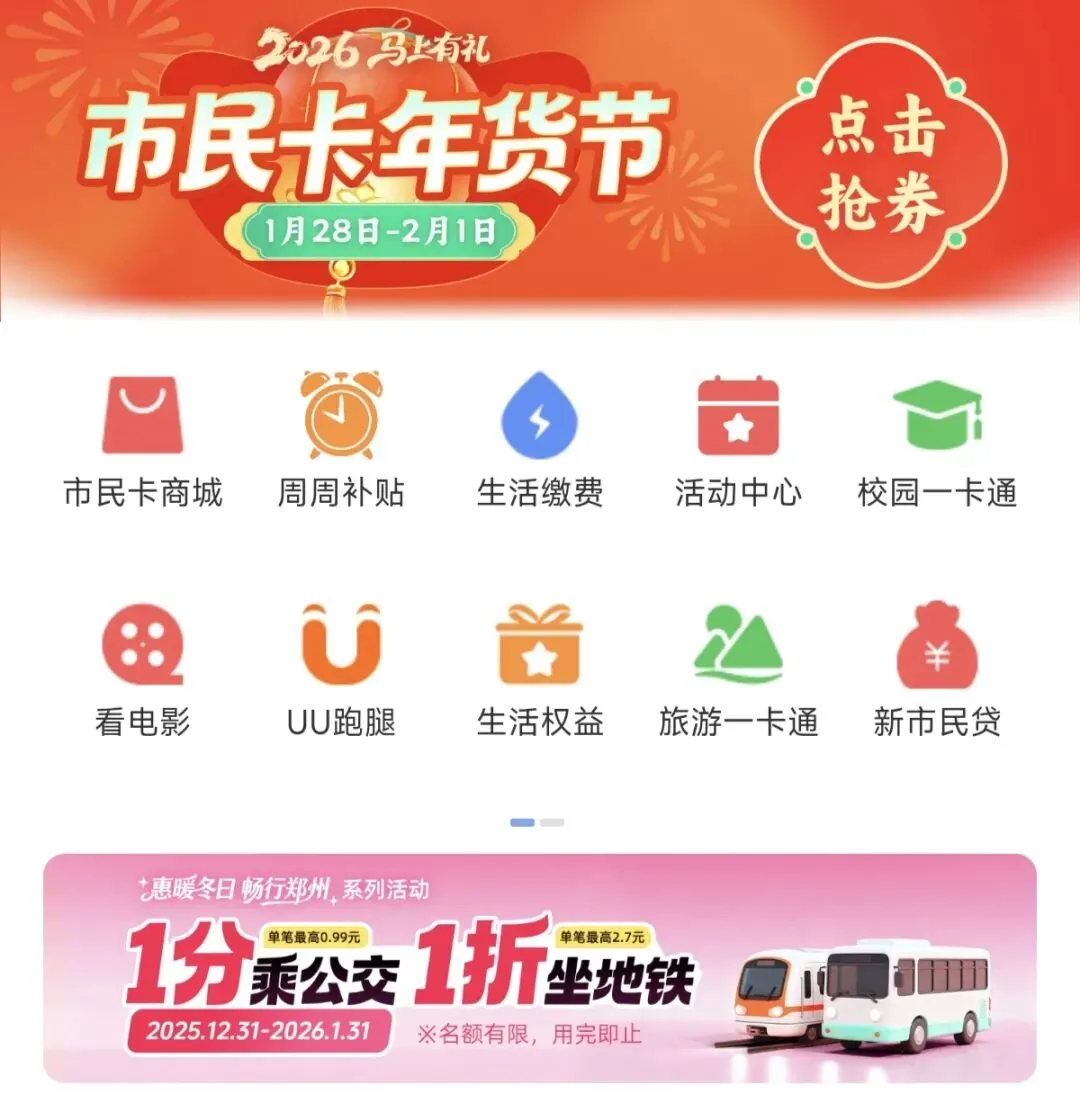 关注「郑州市民卡」公众号/抖音号,官方会第一时间发布优惠活动、领券提醒,还有年货节等专场直播,福利不错过。