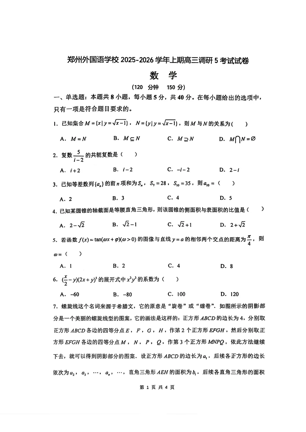 >郑州外国语2025-2026学年高三调研5答案