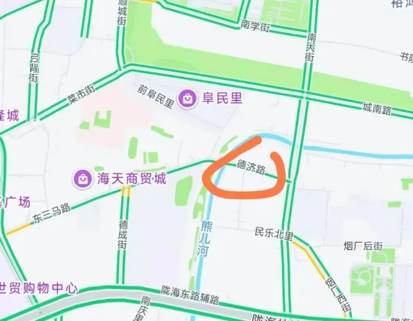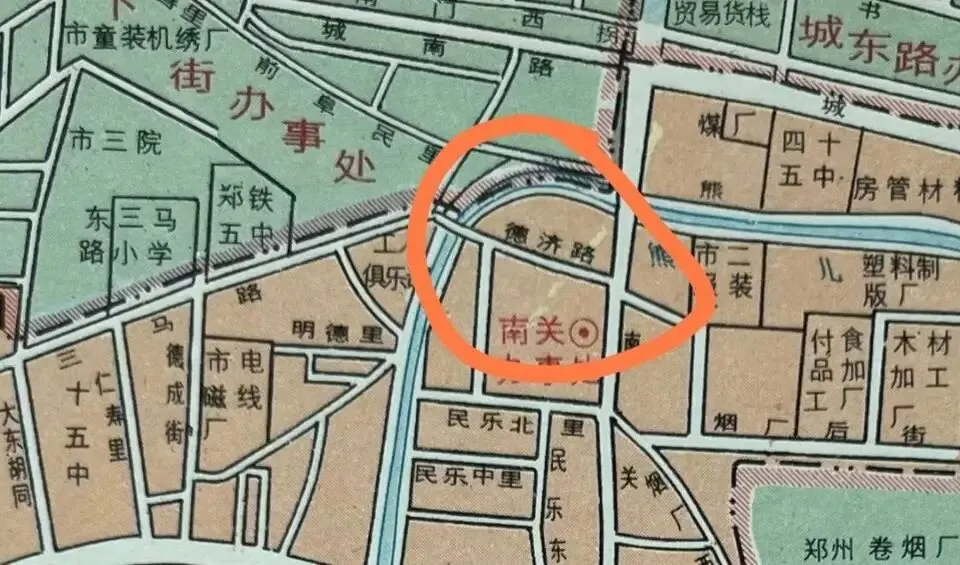 德济路之名,源于德济桥。因其位于德济桥东侧,故得名"德济路"。这条道路位于郑州南关街西侧,解放前,这里是一片空旷地带,曾是每年农历八月十五南关大会的举办场地。解放初期,随着城市发展,这里逐渐形成街道,东起南关街,西过德济桥接东三马路,全长180米,宽7米。辖区范围内,原有郑州市工人俱乐部、陇海影剧院、汽车制造厂招待所等公共设施,承载着几代人的集体记忆。如今,路南有中原美博城和四季鲜农贸市场,路北则坐落着金领寓公寓和德济路9号院,夜晚时分,灯火通明,热闹非凡。德济桥西边,是阜民里和北庆里;从德济桥沿熊耳河往北,可通往熊耳桥。南关工人俱乐部、天盛剧院、骨科医院……这些曾经熟悉的名字,都深深烙印在这片土地的历史脉络中。