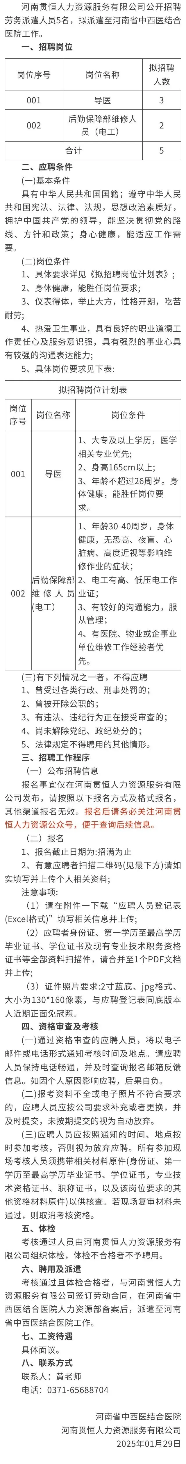 >郑州医院招聘,河南省中西医结合医院劳务派遣人员招聘公告