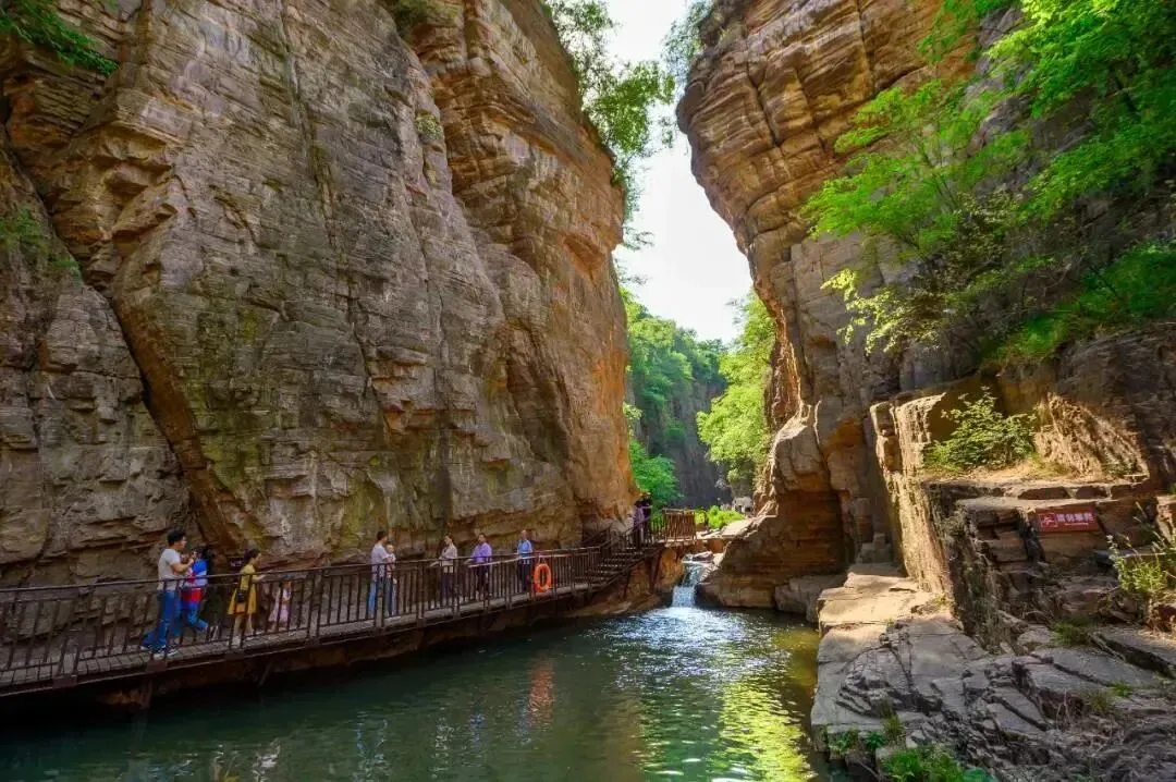 龙潭大峡谷景区位于我县石井镇,是王屋山——黛眉山世界地质公园的核心景区,是一条以典型的红岩嶂谷群地质地貌景观为主的峡谷景区,先后获得“国家地质公园”、“中国最具发展潜力景区”、“中国优秀旅游目的地”、“世界地质公园”、“国家AAAAA级景区”、“全国科普教育基地”、“全国森林康养基地试点建设单位”、“洛阳市研学旅行基地”、河南智慧旅游“三钻级智慧景区”等称号,享有“古海洋天然博物馆”、“黄河山水画廊”等美名。
