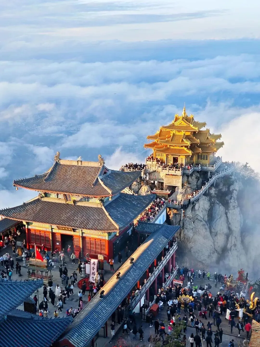 真的是“山不在高,有仙则名”。一座座古建筑矗立在老君山各个顶峰,犹如天上宫阙。