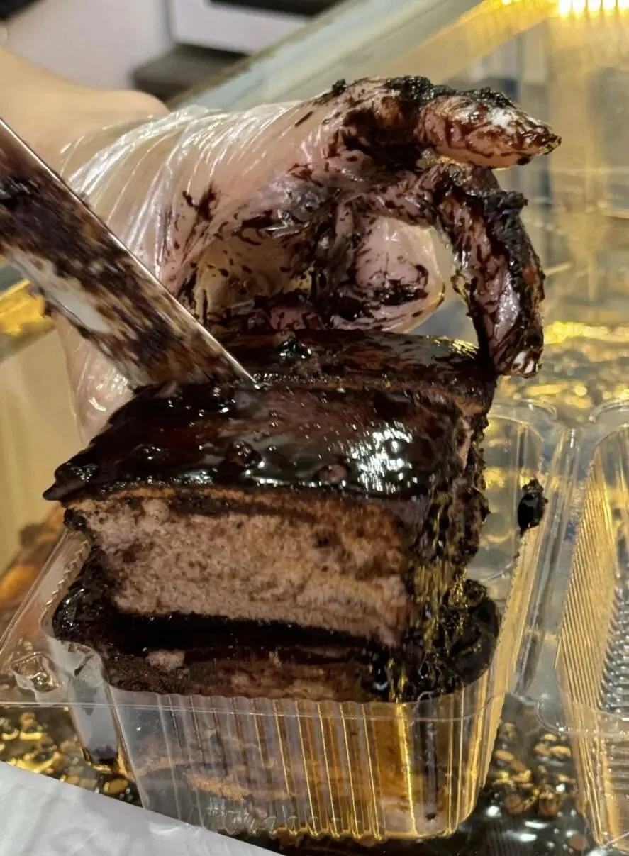 很大一块!!裹满巧克力酱,真的是好满足!!!