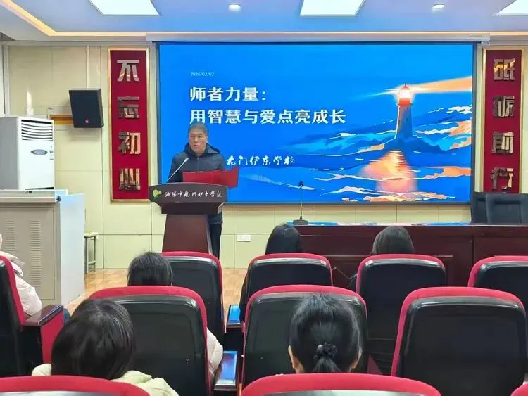2026年2月2日上午,洛阳市龙门伊东学校中学多媒体报告厅内暖意融融,“师者力量——用智慧与爱点亮成长”班主任转化师德案例分享会在此举行。活动旨在总结育人经验、推广先进典型,通过真实案例展现班主任的教育智慧与师德风采,促进教师间的学习交流,营造全员育人的良好氛围。全体小学教师、特邀名班主任工作室主持人雷劭锋与郑瑶峰老师及校领导参与了本次活动。