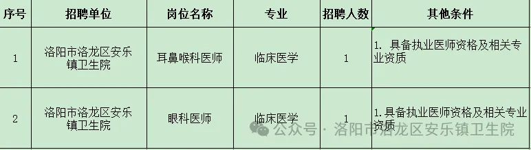 【河南洛阳】招医师 | 洛阳洛龙区安乐镇卫生院,招聘公告(2026年2月28日)