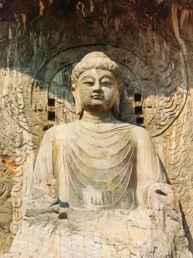 午后的阳光愈发炽烈,却丝毫没有削弱佛像的庄严。我站在卢舍那大佛的正前方,与它四目相对。它的眼睛并非实心雕刻,而是采用了“镂空雕”技法,瞳孔处微微凹陷,使得无论从哪个角度望去,都感觉佛像在凝视着自己。这种“眼神追随”的效果,在唐代造像中极为罕见,难怪古人会称其为“佛眼照世”。传说当年武则天前来参拜时,曾对着佛像喃喃自语,而佛像的眼睛,仿佛真的能洞察她的心思。此刻的我,心中并无太多杂念,只觉得在这双穿越千年的眼睛面前,所有的烦恼与焦虑都变得微不足道。它见过盛世的繁华,也见过乱世的苍凉,却始终保持着那份慈悲与从容,这种历经沧桑后的平静,远比任何言语都更有力量。
