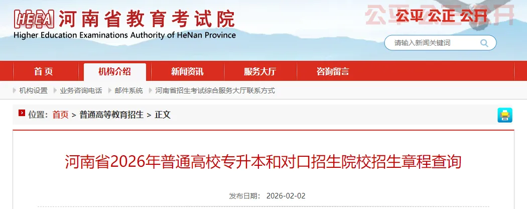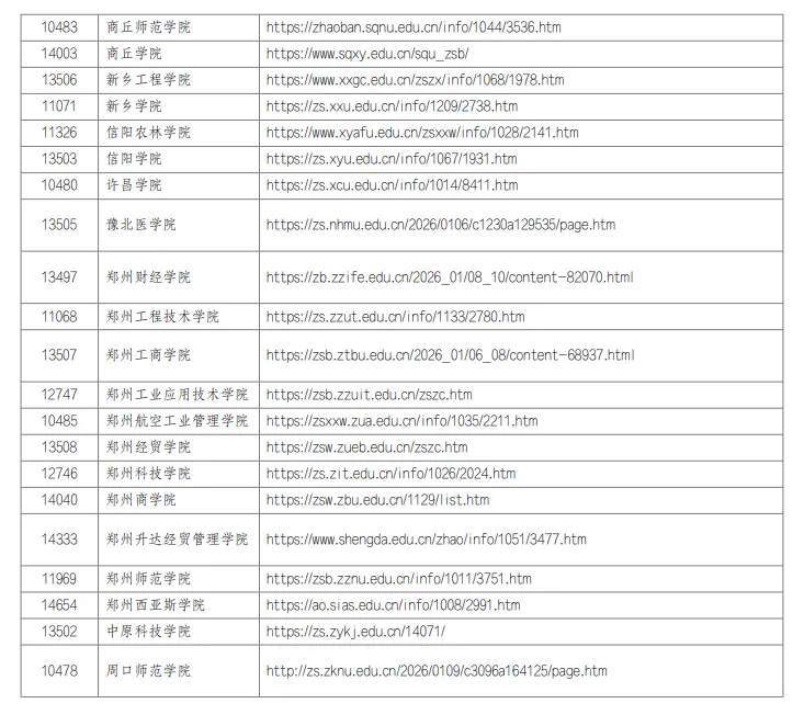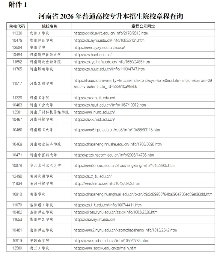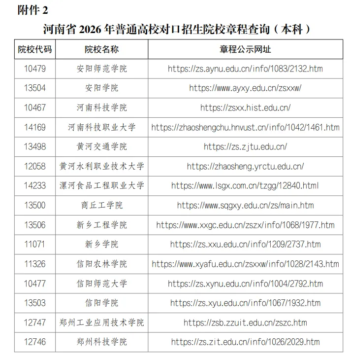 2.河南省2026年普通高校对口招生院校章程查询(本科)