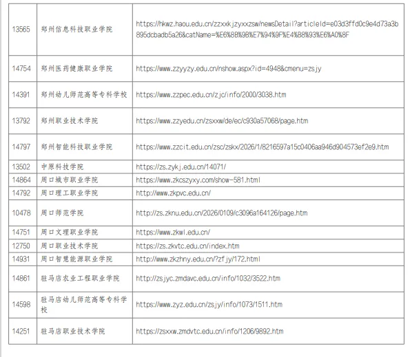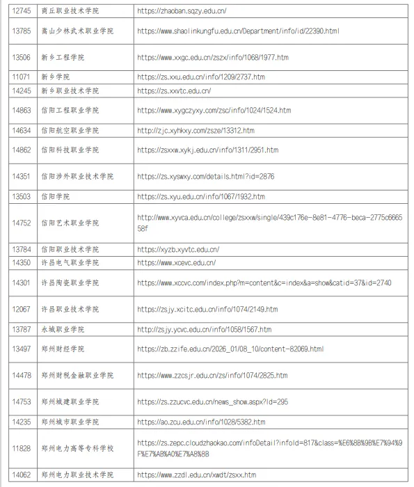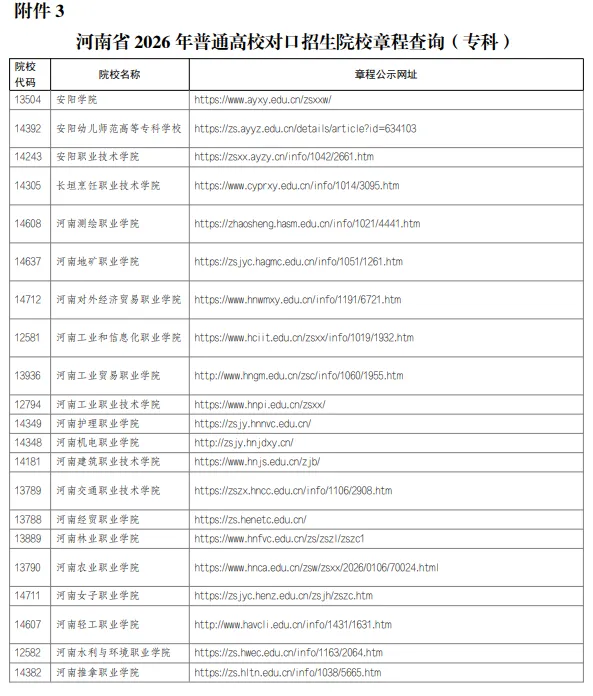 3.河南省2026年普通高校对口招生院校章程查询(专科)