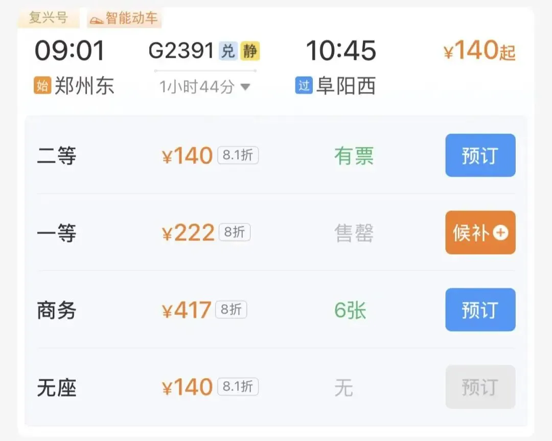 以下仅为小编的部分汇总,更多城市欢迎各位小伙伴在留言区补充哦,高铁票数据截图于铁路12306,如有车次运营调整或车票折扣调整,请以实际查询结果为准