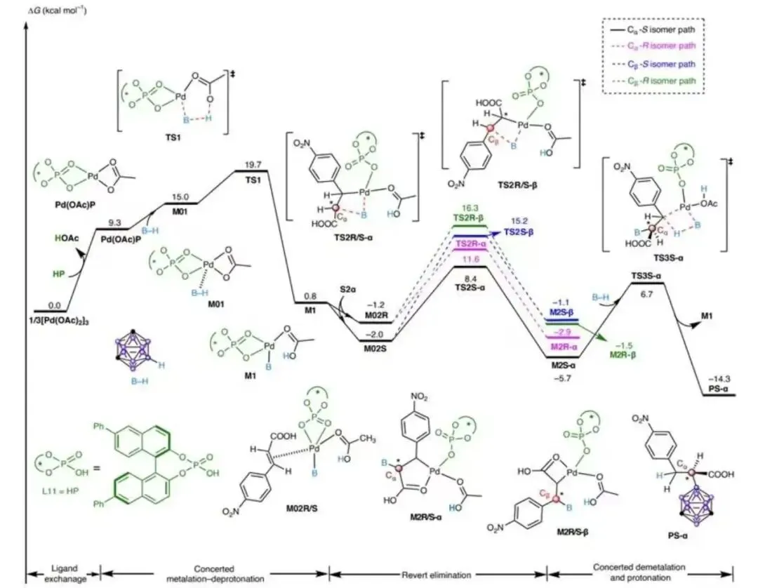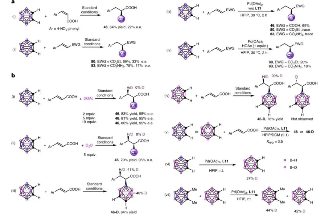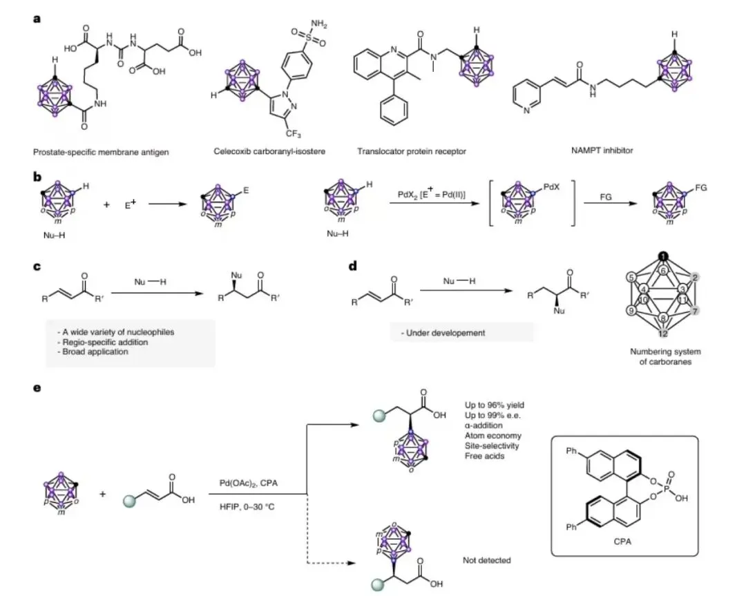 2.共同催化:在乙酸钯与手性磷酸(CPA)的共同催化下,碳硼烷与α,β-不饱和羧酸反应可高选择性生成α-加成产物。