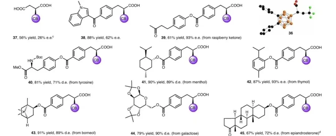 小结:克级反应收率达86%,¹⁰B标记产物可用于硼中子俘获治疗。羧基可转化为酯(80)、酰胺(81)等衍生物,手性中心在酸碱条件下保持稳定,为药物分子修饰提供新途径。