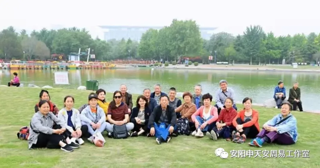 安阳市老干部大学易经班于2007年开班,至今有19个年头了。图为2021年易经班到安阳市易园太极湖中心点上课时部分学员合影。