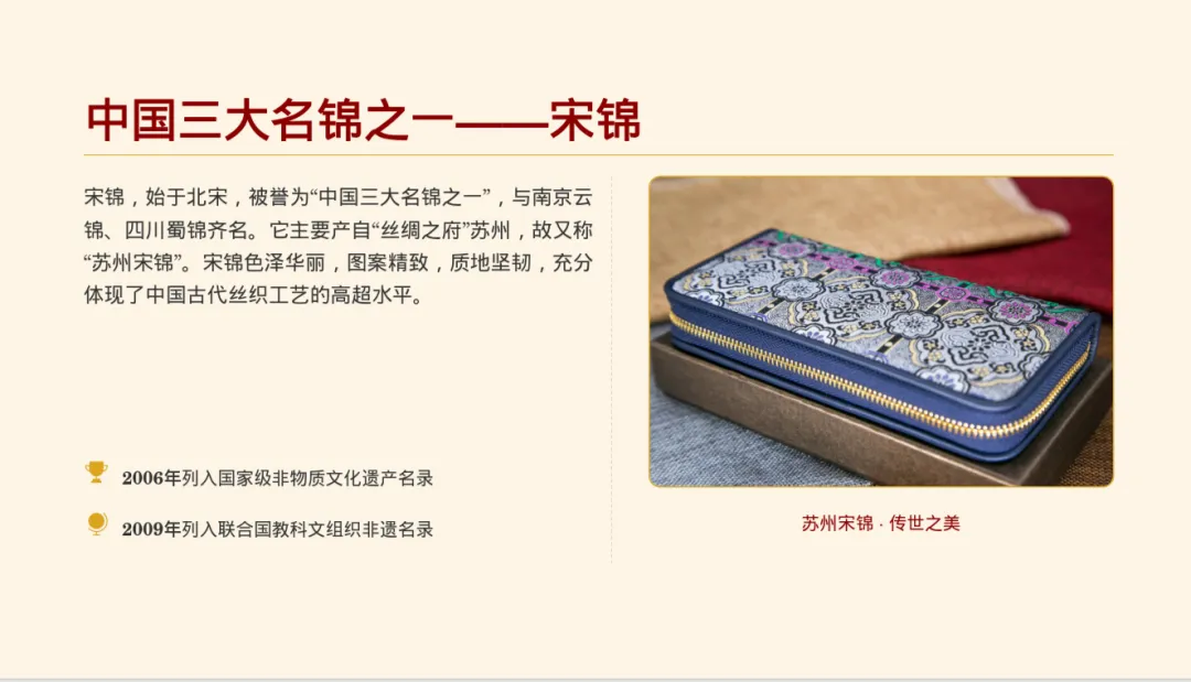 在随后进行的非遗文化体验环节,齐文莎老师带领教师们共同走进了被誉为“中国三大名锦”之一的宋锦世界。通过生动讲解,大家深入了解了宋锦自北宋起源的悠久历史、其作为国家级非物质文化遗产的卓越价值,以及“挑花结本”等极为复杂精妙的传统织造技艺,深刻感受了其中蕴含的匠心精神与文化底蕴。