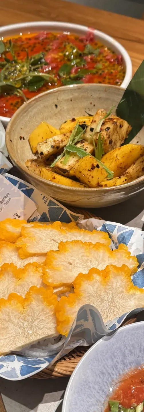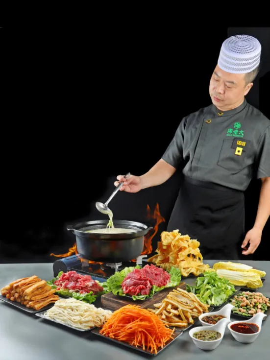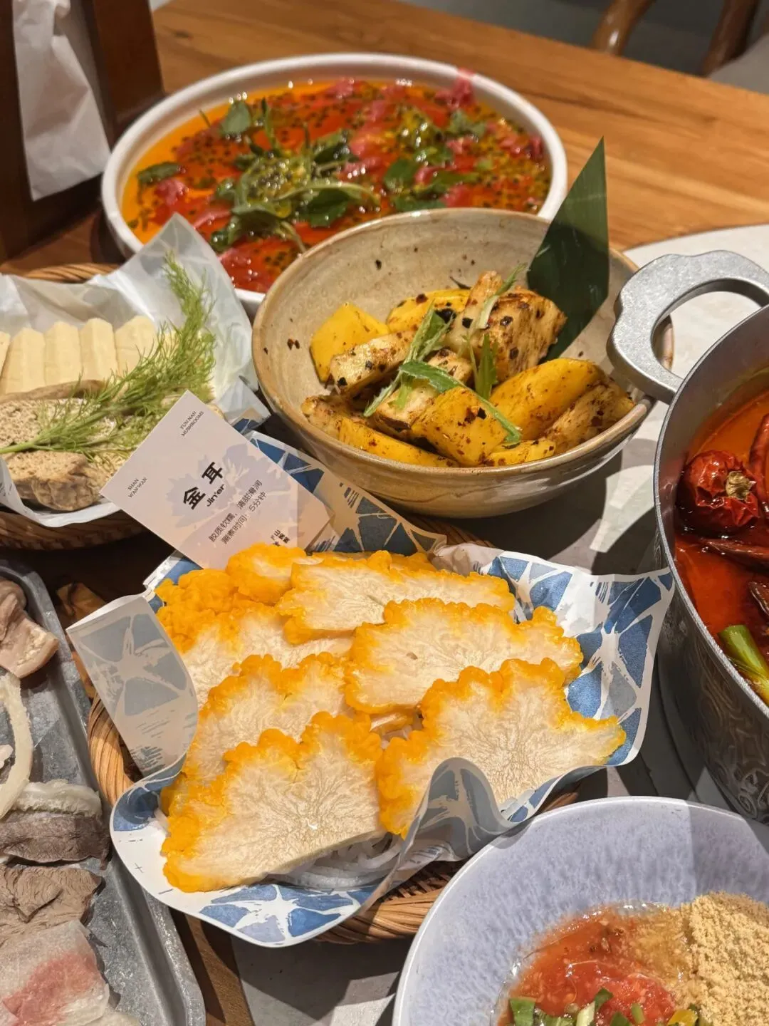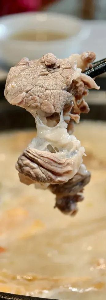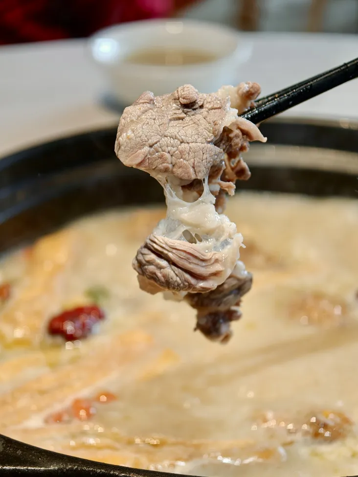 酸浆锅底沸腾后,下入鲜切牛肉,肉的油脂香与醇厚的酸汤完美融合,开胃又暖和。