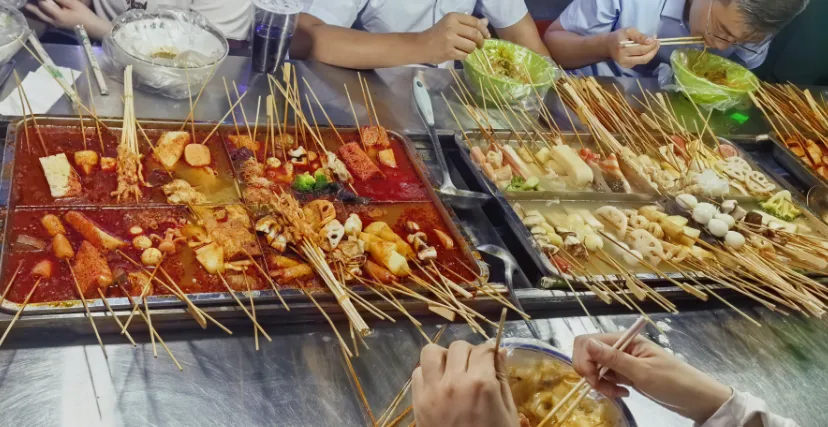 油亮的小龙虾在锅里翻滚,裹着红亮的酱汁;推开火锅店门,便能闻见牛油的醇厚香气;街边的大盘鸡店里,食客们正大快朵颐;烧烤工厂的音乐响亮,桌与桌之间的笑声连成一片......