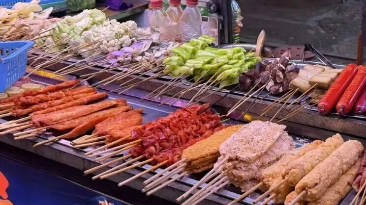 酸梅汤、铁板鱿鱼、里脊肉饼、铜锣烧、串串火锅……各种小吃在叫卖声和香气里,让人难以抗拒。