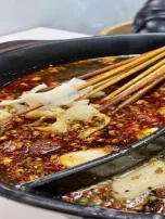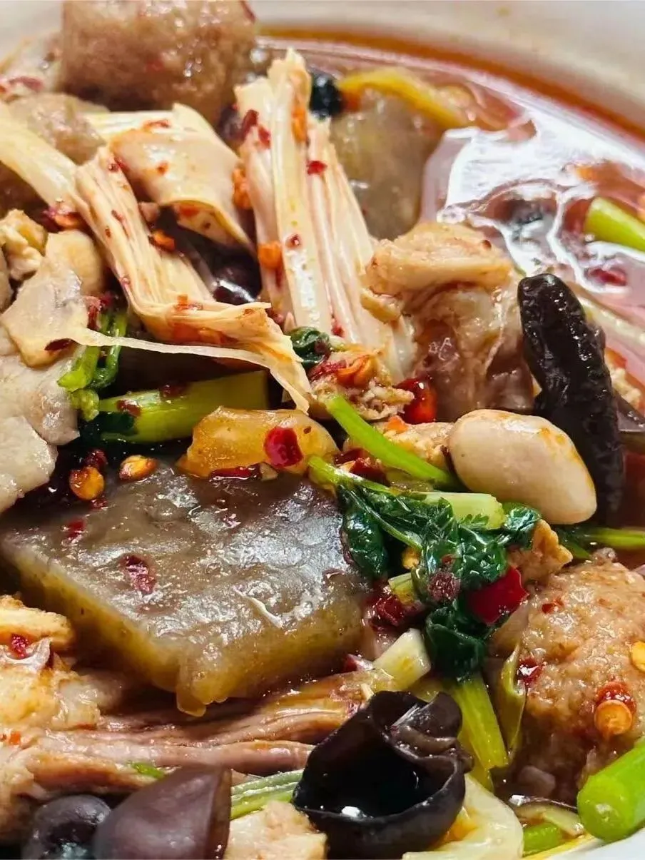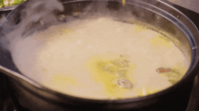 除了烤鱼、烤肉、涮牛肚,烤羊排、板筋、牛腩锅……冬日的塔西烧烤城,还有一样特色不能错过——“酸浆火锅”。