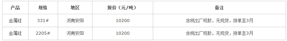 >2月2日安阳星华金属材料金属硅报价