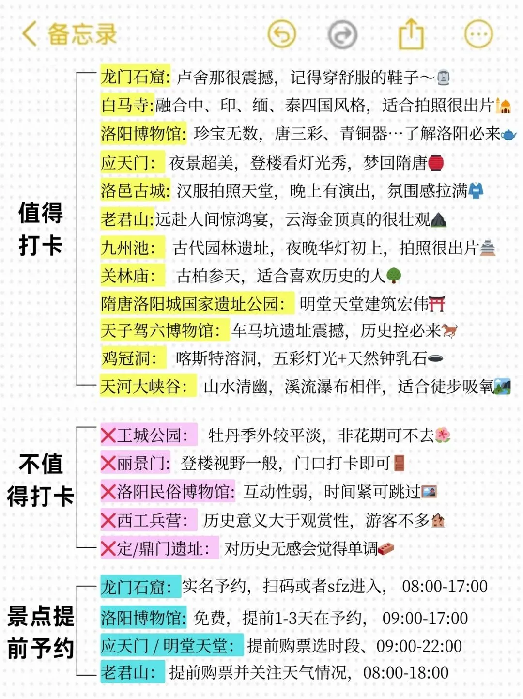 姐妹们!洛阳是来了真的还想再来的地方!如果去之前记得需要做好游玩攻略,不然就会踩大坑!这个时候洛阳旅游人是很多,作为一个去了洛阳6次的人,熬夜整理出洛阳游玩的指南,准备去洛阳的baby们记得🐎住~