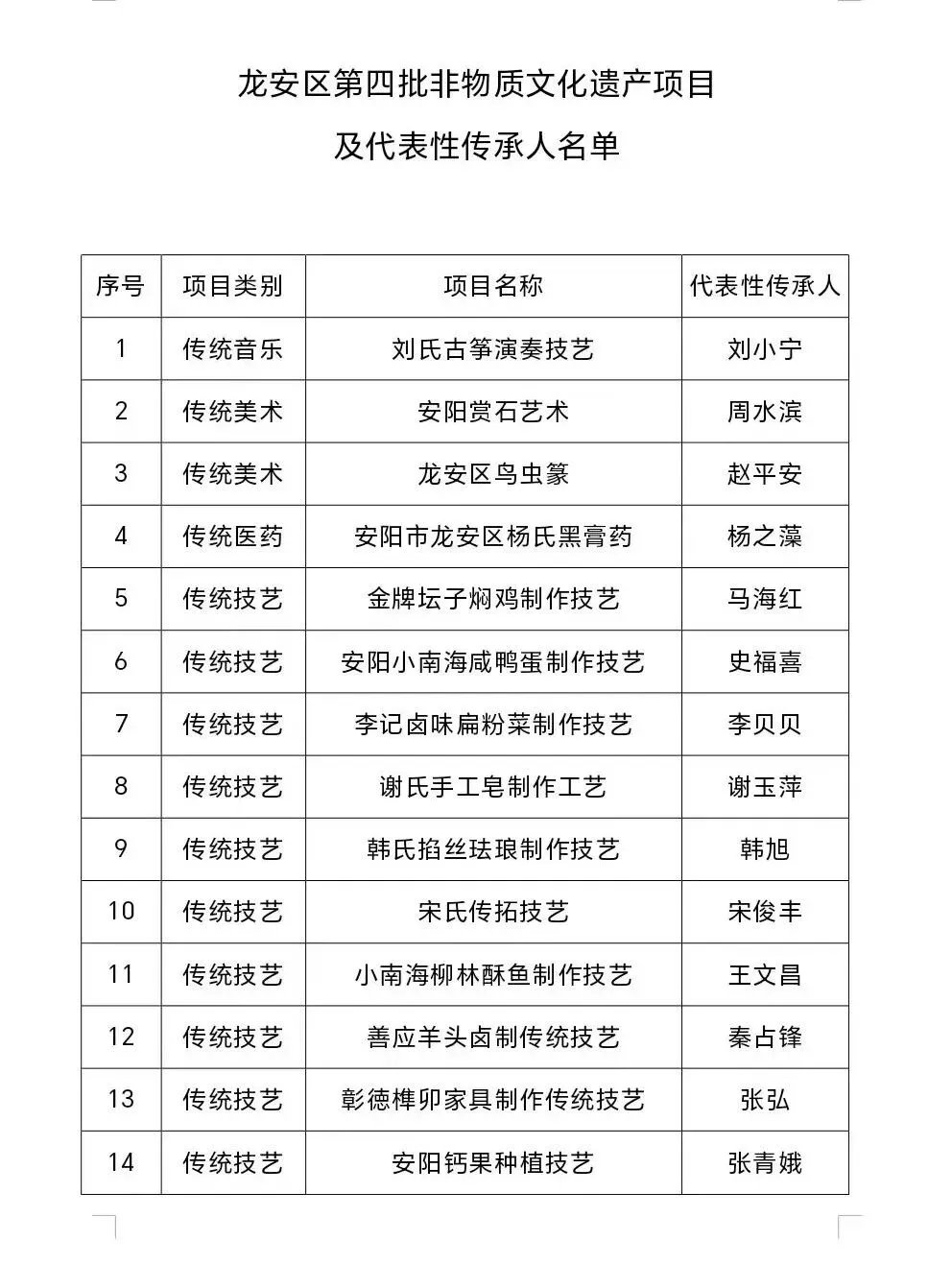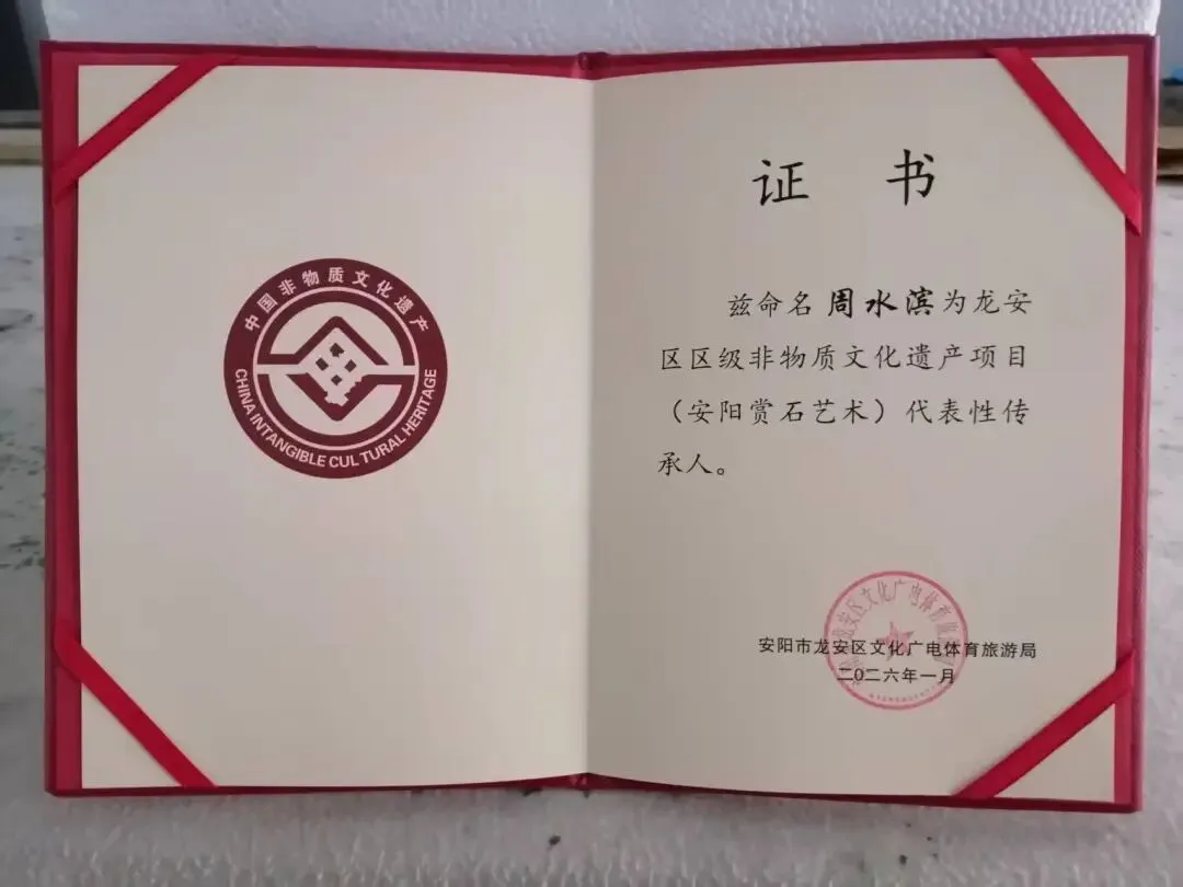 1月30日,安阳市龙安区人民政府发布《关于公布第四批区级非物质文化遗产代表性项目和代表性传承人的通知》,将“安阳赏石艺术”等14个项目列入第四批区级非物质文化遗产代表性项目名录,同时认定周水滨等14人为非物质文化遗产项目代表性传承人。“安阳赏石艺术”传承至今已逾900余年,此次入选标志其纳入现代非物质文化遗产保护体系,为这项承载古都文脉的传统艺术注入新时代发展动力。