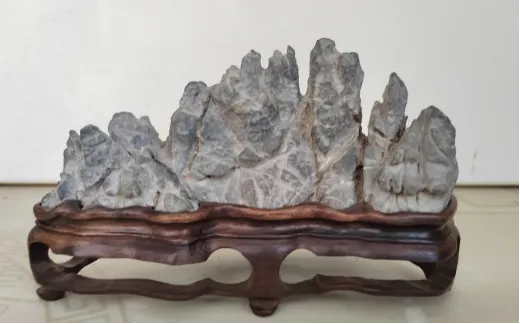 宋人杜绾《云林石谱》记载:“相州林虑石,产交口土中,其质坚润,扣之有声。石多倒生向下,垂如钟乳,融然天成。錾去粗石,留石坐,峰峦秀拔,如载山一座。亦有成物状者,石色甚碧。曾贡入内府,有蓝关、苍虬、洞天等名,凡十余品,各高数寸,甚奇异。又有一种,色稍斑而微黑,稍有土渍,易于洗涤,有大山势,四面徘徊,惟背稍著土,千岩万壑,峰峦迤逦,颇多嵌空,洞穴宛转相通,不假人为。至有中虚可施香烬,静而视之,若烟云出没岩岫间。此石因崇宁间方士相视地脉偶得之,大不逾三五尺,至于拳大,奇巧百怪。林虑石——蓝关