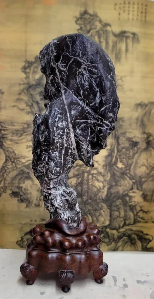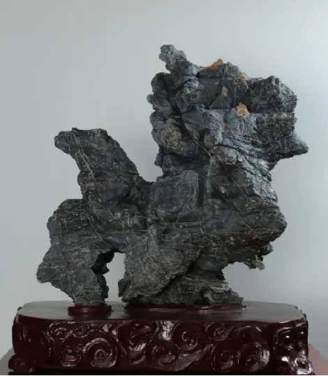 安阳赏石艺术是自然与人的深刻对话,从采石、清理,到配座、命名,再到品鉴、赋石,形成了完整的赏石流程,每一步都蕴含着“天人合一”的文化智慧。石友们或在林虑山的褶皱中挖掘林虑石的神秘,或在漳河的河滩上捡拾梨园石的朴拙,或在马投涧的田间地头搜寻相州太湖石的灵秀。安阳奇石经清水浸泡、毛刷洗礼褪去尘垢后,再配以木质、石质或陶瓷底座,最终通过寓意深远的命名赋予石头灵魂。在安阳石协举办的赏石雅集、咏石茶社等活动中,文化名人为安阳奇石撰文、赋诗、填词,艺术家创作赏石书法、篆刻、美术作品,赋予了安阳奇石丰富的文化内涵。这种艺术实践不仅传承了文人赏石的传统,也为现代文化生活注入了新的活力,让一方方安阳奇石成为承载情感与哲思的文化载体。