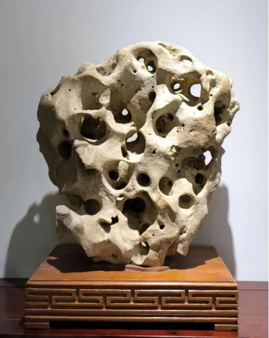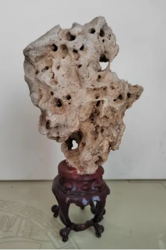 相州太湖石即安阳太湖石,是指出产于安阳市龙安区马头涧乡境内,形状和质地类似太湖石的一种赏形类奇石。具有瘦、皱、漏、透特点。颜色多为白色、灰白色,明亮醒目。奇石表面呈土状、蜡状光泽。石大者数米,小者盈握;可作园林观赏石,亦可作厅堂供石。相州太湖石母岩是湖相沉积的石灰岩(淡水石灰岩),遭受风化剥蚀,尤其是遭受酸雨侵蚀,碳酸钙部分溶解,形成溶孔、溶洞、溶槽,从而造就千姿百态玲珑剔透的太湖石形状。
