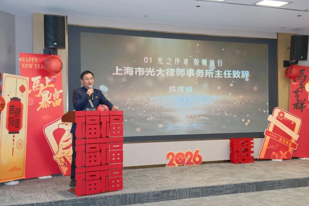 追光而遇,沐光而行。2026年1月31日,上海光大(郑州)律师事务所2025年度工作总结会隆重举行。光大郑州所全体同仁、上海总所合伙人陈崖峰及特邀嘉宾齐聚一堂,共同回首奋斗征程,擘画未来新篇。