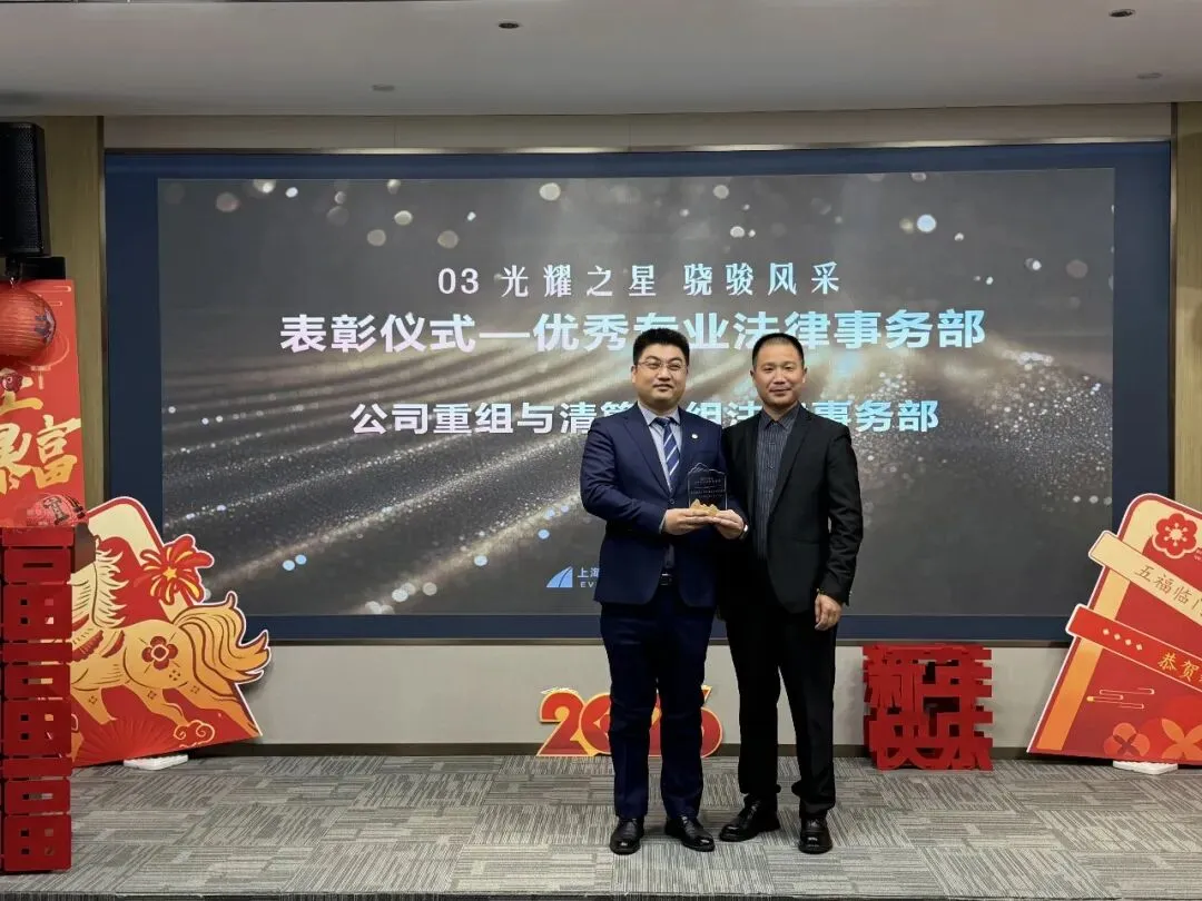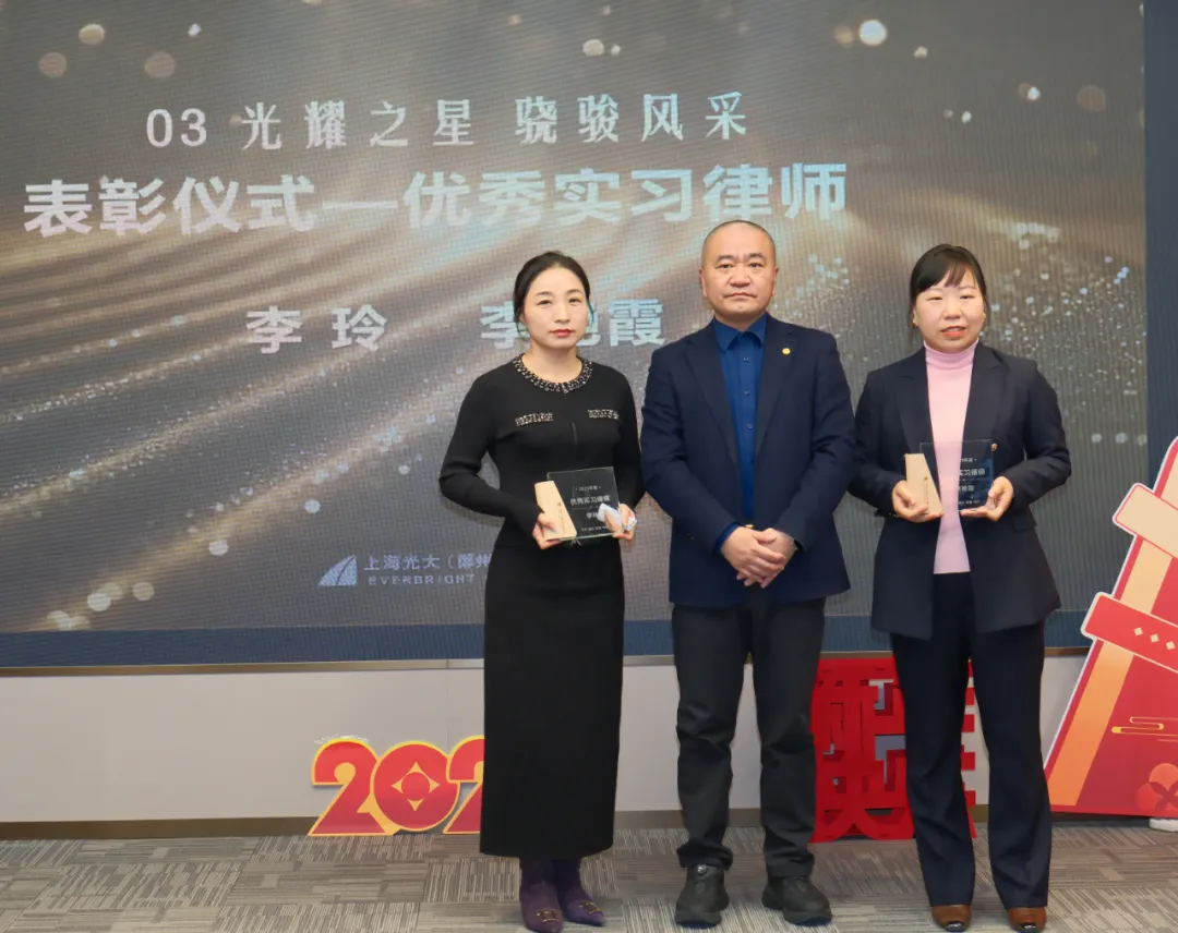 过往一年的丰硕成果,源自每一位光大人的敬业付出与卓越追求。大会对2025年度优秀团队与个人进行了隆重表彰,高级合伙人柯冀军宣读获奖人员名单。徐凯亮、张超、王朕生、李振兴、龚智勇、师金博荣获 “优秀律师”公司重组与清算重组法律事务部荣获“优秀专业法律事务部”在颁奖环节,优秀律师代表龚智勇、优秀党员律师李艳艳、创收达人李琦、优秀实习律师代表李玲、优秀部门代表何曼茹及服务之星冯琪依次上台,分享他们的成长轨迹、执业感悟与服务心得。