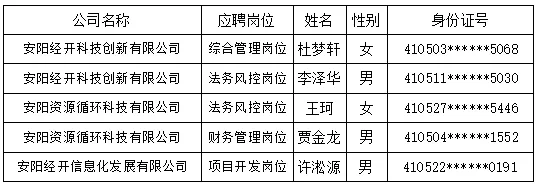 >安阳经济开发集团有限公司下属子公司拟录用人员名单公示