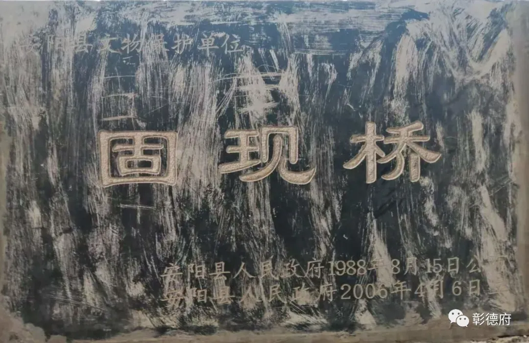 固现桥位于河南省安阳市殷都曲沟镇固现村西洹河之上,古石桥始建于明朝正德年间(1506年—1521年),由彰德府赵简王府的承奉、周顺始建。石桥采用石拱桥结构,桥面高出洹河水面数丈,桥上有栏板石雕、石柱,新建成的石桥被洪水冲垮。为了保持桥梁的永久稳固,周顺决定改建南方地区常见的平桥,在旧桥址的南侧新建平桥。采用铁细腰锁定石基,用横石为梁,桥面上不设栏杆,洪水来时,可以直接从桥面上漫过。固现桥桥面略高于洹河水面,小水可纳,大水漫流,故又称“漫水桥”。桥东西长6丈(合今18.7米),宽8尺(合今2.15米)。“石碣平铺,桥孔泄水迂缓,水至桥中半,壅激有声,远望如长虹,旭日东升,光射桥西石岸,返照入水,景色宜人。”“漫水长虹”由此而得名。