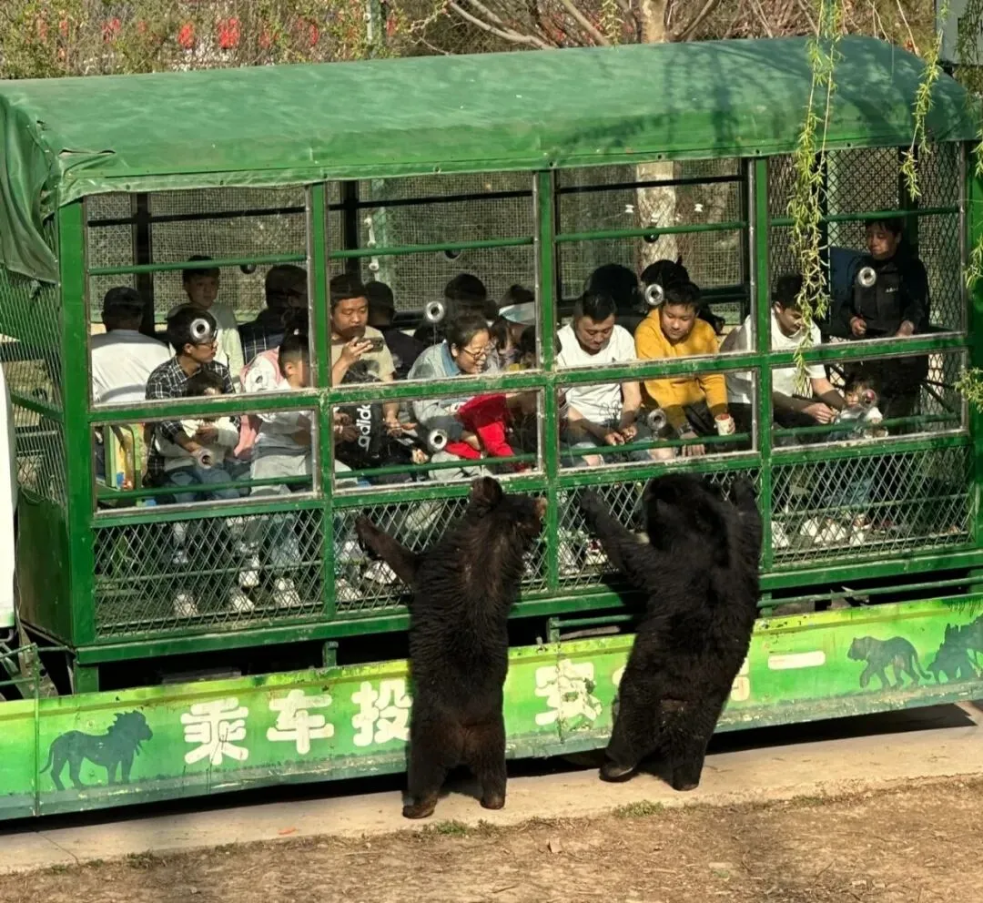 在这里,你不仅可以 观赏动物,还能与它们 亲密互动。坐上观光投食车,亲手给老虎、狮子、黑熊等猛兽投喂食物,感受它们的野性与力量;或者来到温顺的萌宠区,和小兔子、小羊们一起玩耍,给它们喂胡萝卜,享受温馨的亲子时光。