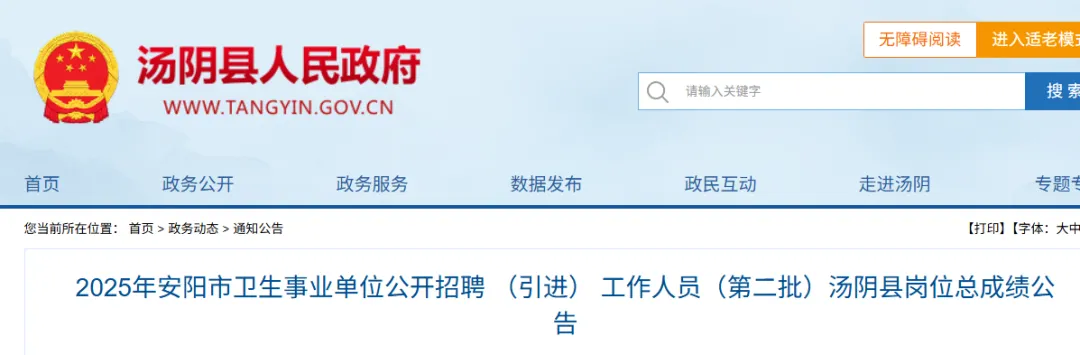 / 【安阳汤阴】【成绩公示】2025 卫生事业单位第二批招聘汤阴县岗位总成绩公布!145 人成绩全览→ /