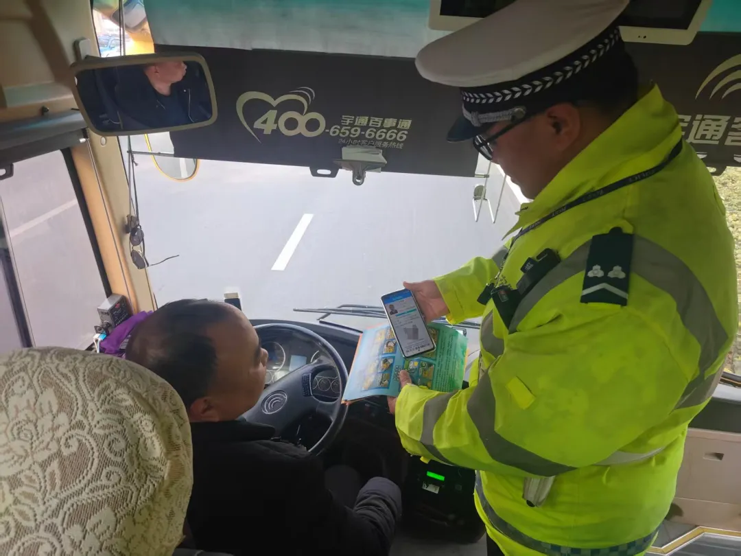 在客运站,民警以“面对面”零距离交流的形式,向企业驾驶人、志愿者以及乘客细致解读宣传交通安全法律法规,结合秋冬季雨雾多发、路面湿滑、低温结冰等道路通行特点,做到预警在先、防范在前。在加强宣传的同时,民警还对客运站内准备发班的营运客车进行了严格的安全技术状况检查,坚决杜绝“带病车”上路运营,从源头上消除事故隐患。