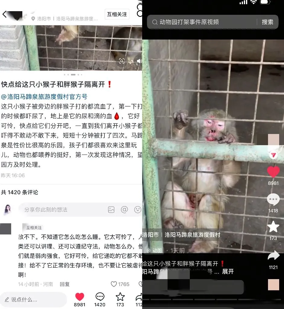她进一步透露,这次打架的两只猴子一只为母猴另一只为公猴,曾共同生活并诞下一只幼猴,目前幼猴也在相邻笼内。公开资料显示,洛阳马蹄泉旅游度假村为洛阳市3A级乡村旅游景区,园区包含动物园、滑梯公园、秋千园等设施,是本地家庭亲子出游的热门选择。郭女士强调,园区每天会定时投喂饲料、巡查动物状态,但“猴子打架往往是突然发生,打完又很快分开”,今后将继续加强实时观察与干预。她也回应网友关切:“欢迎大家通过平台@我们,但即便没有看到视频,我们饲养员也会及时处理。”