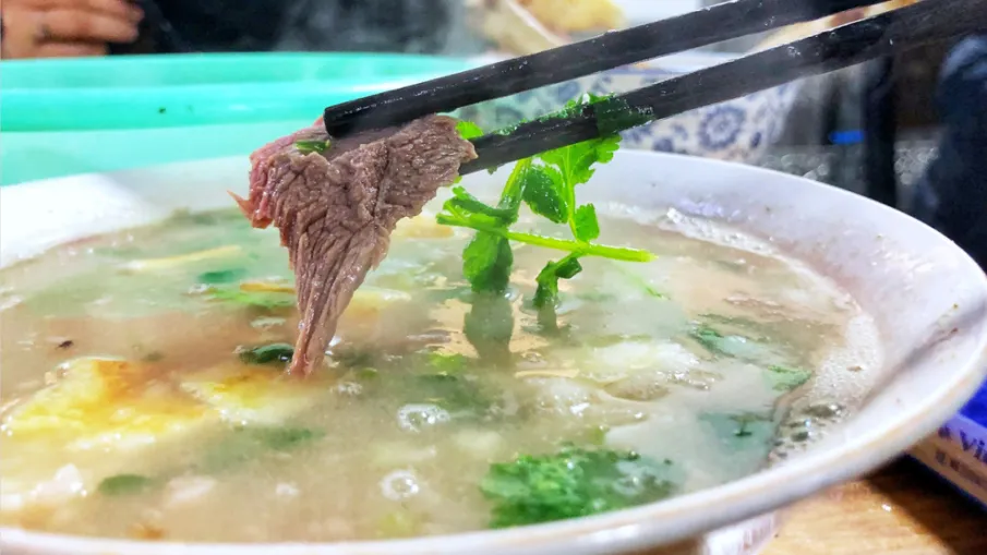 浆面条是家常里最动人的滋味,发酵的绿豆浆带着独特的酸香,是洛阳人最勾魂的家乡味。浓稠的汤汁裹着顺滑的面条,芹菜的清爽、韭花的咸香层层铺展,再配上一块炸得金黄酥脆的馍块,一口下去,尽是岁月里的温情,像极了记忆里厨房飘来的、日复一日的烟火气息。
