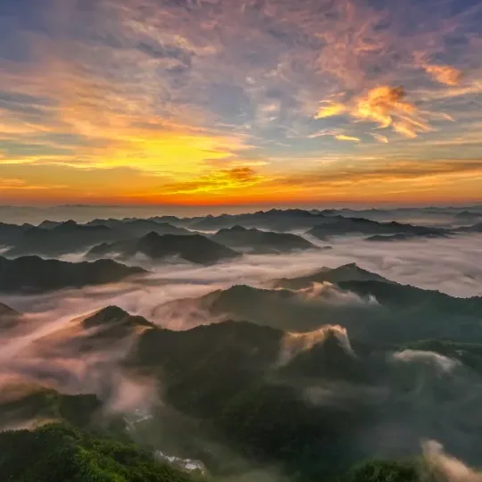 老君山藏着浓烈的浪漫,五角枫的橙红、黄栌的火红交织在一起;荆紫仙山的红叶漫山遍野,层林尽染;白云山旁的银杏,叶片簌簌飘落,铺成柔软的金毯,风过叶响。