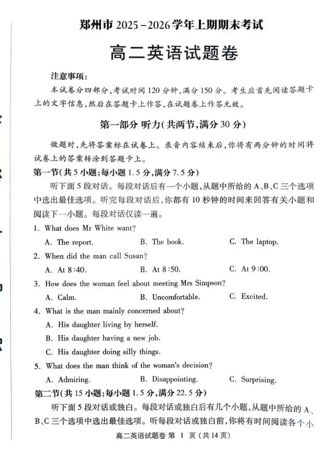 (全科答案更新)2*3河南郑州市高二期末考试#河南郑州市高二期末考试#高二期末参考新鲜出炉