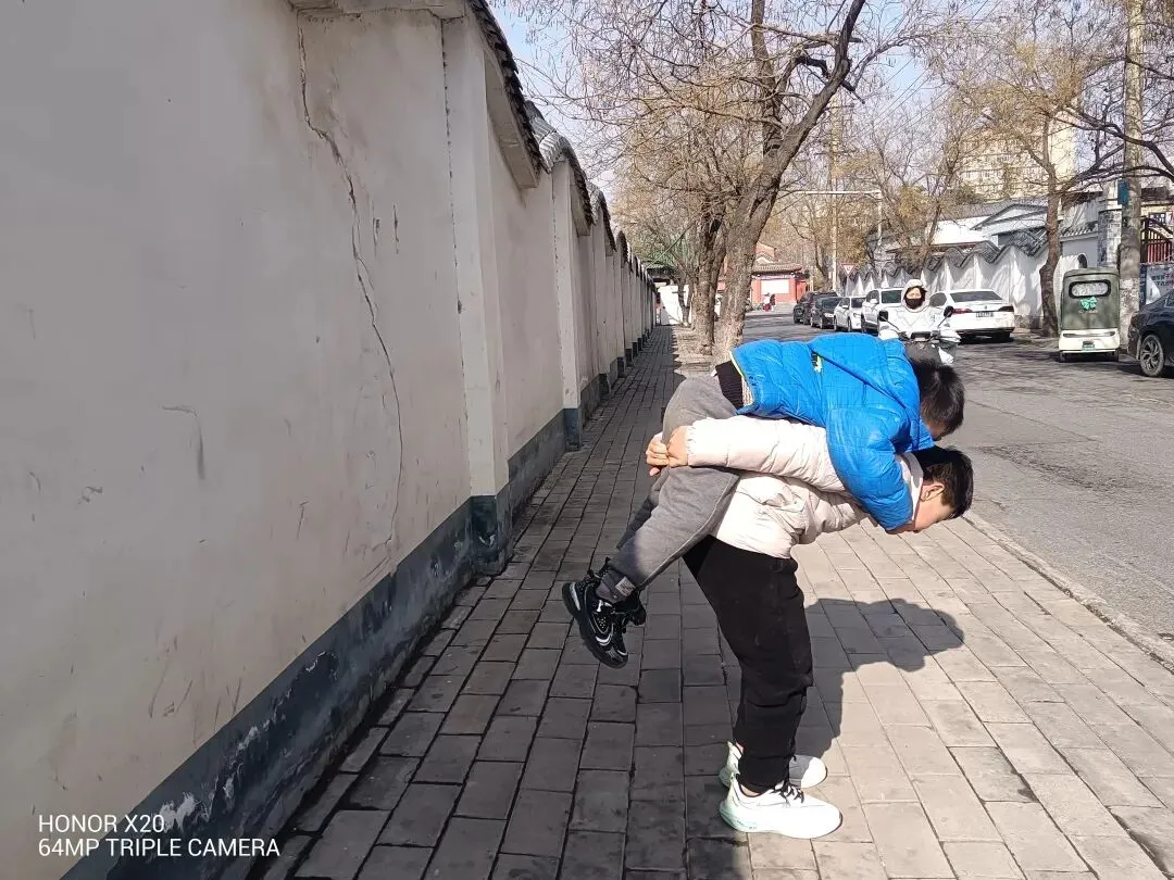 一出地铁口就是一个小公园,有遛弯的,晒暖的,带孩子的,两个宝一出来就迫不及待的开始疯跑了。