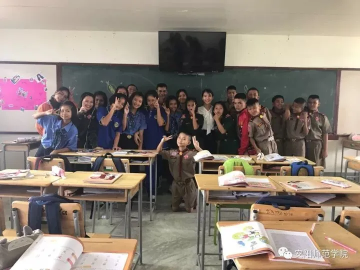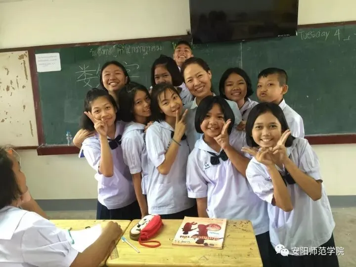 2017级研究生冯慧慧在泰国(教室)课后与学生合影